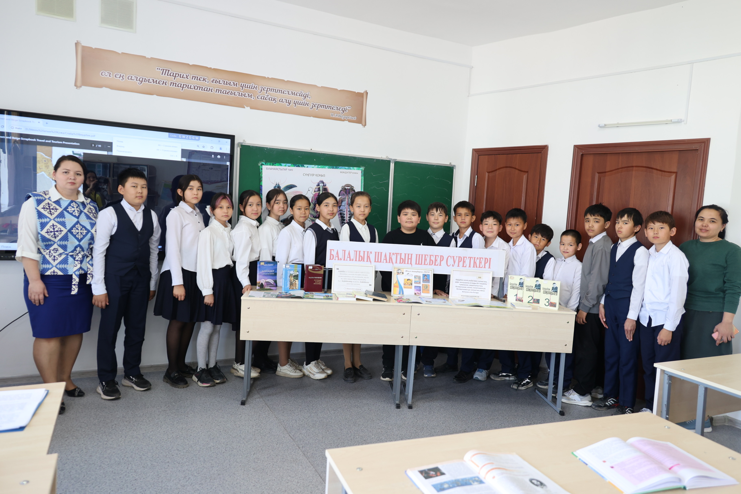 Шара барысында кітапханашы Азатгүл Жасұланқызы жазушы Бердібек Соқпақбаевтың өмірі мен шығармашылығы туралы ақпарат берді. 6 «А»класс оқушылары Жанерке Исатаева, Нұрбол Закерия, Самат Дияр мен Ахметқан Сұлтан қаламгердің өлеңдерін оқып, «Менің атым Қожа» шығармасынан көрініс қойды. Сергіту сәтінде оқушыларға «Kahoot» ойыны ойнатылды.