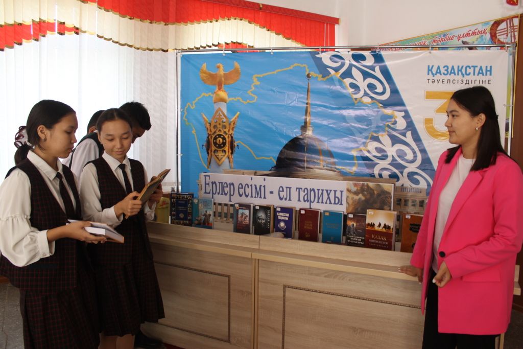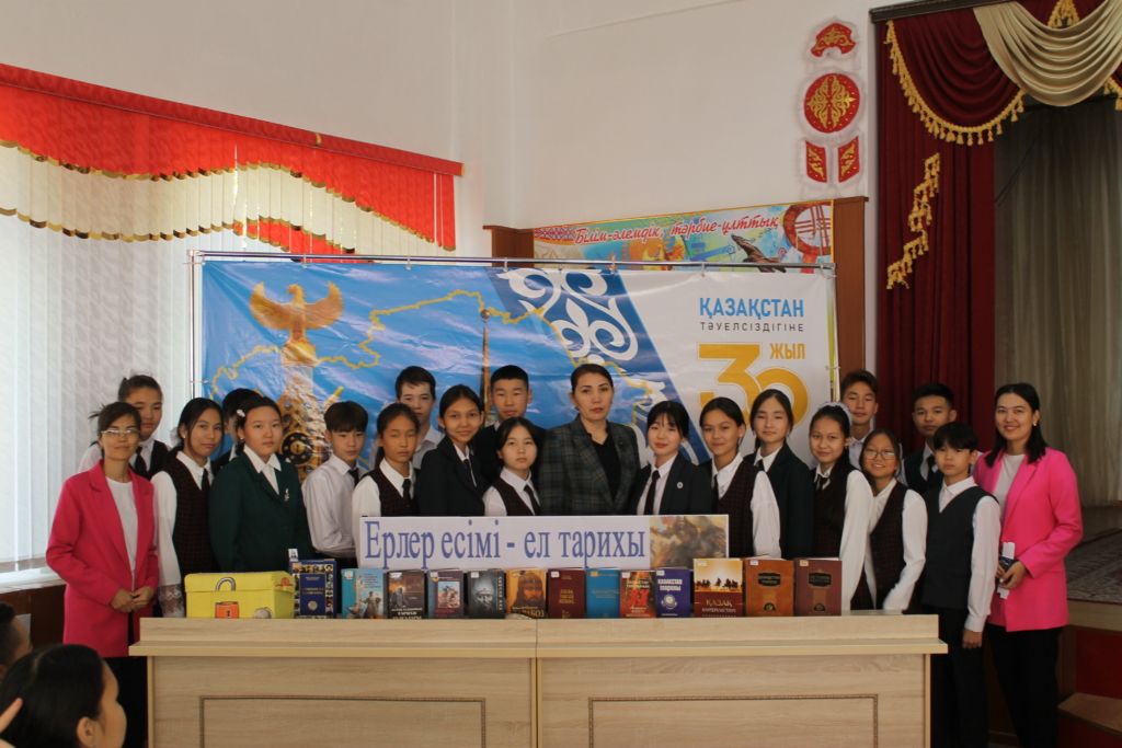 «Ерлер есімі – ел тарихы» кітап көрмесі жасақталып көрмеге Лаура Ерікқызы библиографиялық шолу жасады. Тақырыпқа сай слайд, бейнеролик көрсетілді. Дөңгелек үстелге №30 орта мектебінің мұғалімдері мен оқушылары, кітапханашылар қатысты.