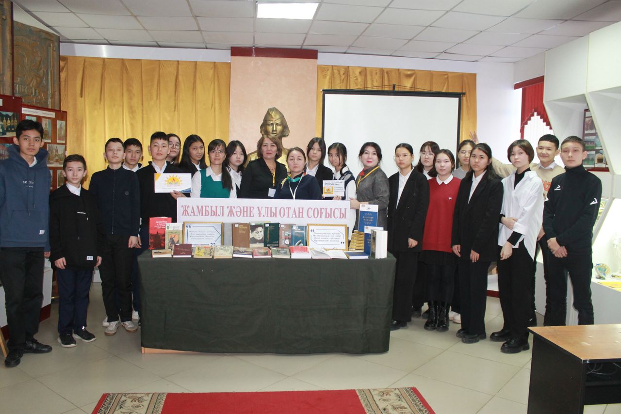 Шара барысында отты жылдарды жырларымен жауынгерлерді, халықты рухтандырған ақын Жамбыл Жабаевтың өлеңдері оқылып, Ж.Жабаев атындағы әдеби мемориалды музейінің дайындаған бейнеролигі мен музей экспозициясы таныстырылды. Сонымен қатар кең көлемдегі «Жамбыл және Ұлы Отан соғысы» атты кітап көрмесі ұйымдастырылып, көрмеге Айнұр Нұрсайынқызы библиографиялық шолу жасады.