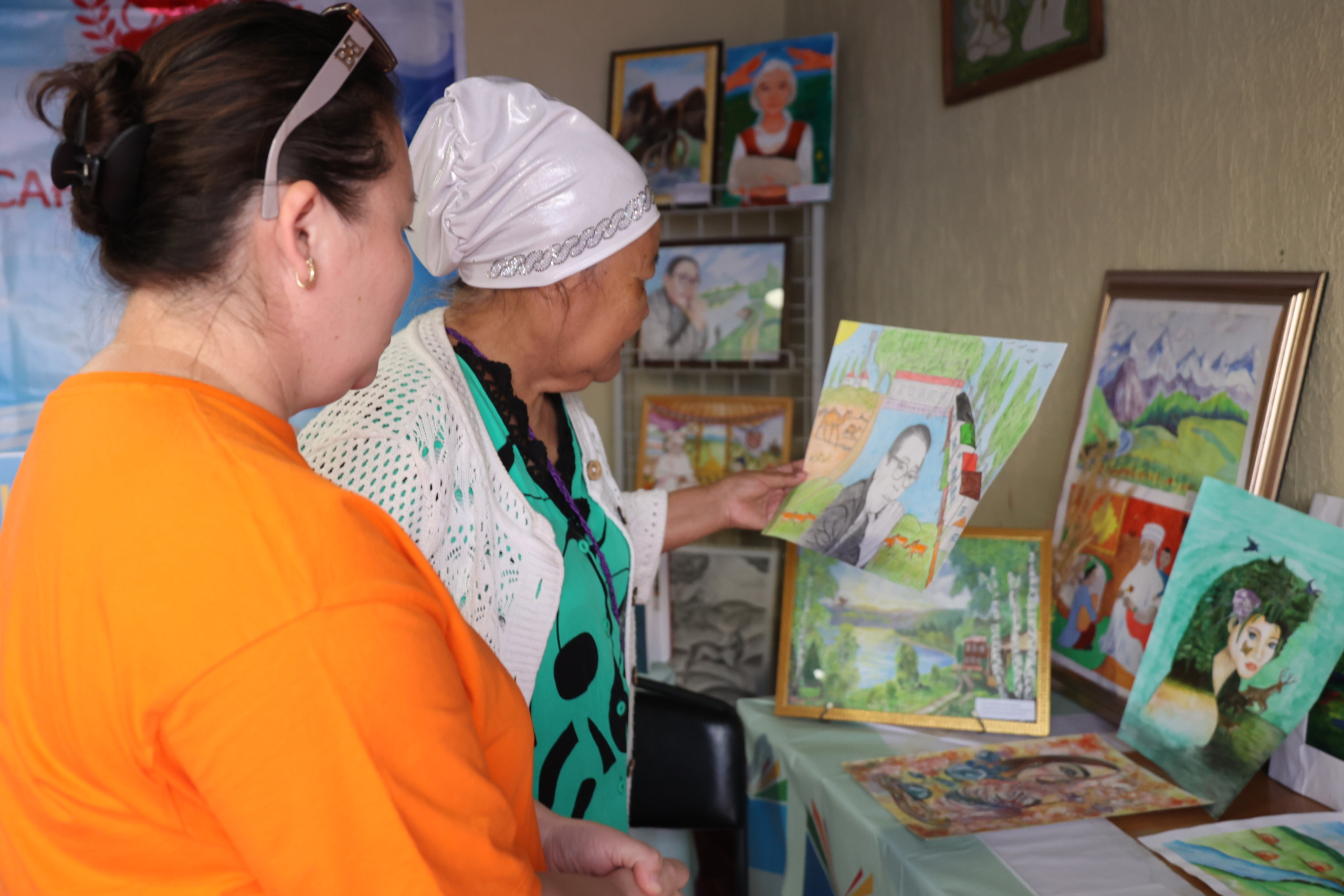 Ұйымдастырылған кітап көрмесіне кітапхана қорында жинақталған ақын-жазушылардың шығармалары М.Әуезовтің «Абай жолы», «Абай тілі сөздігі», «Абайдың қара сөздері», С.Жиенбаевтың «Менің көршім», «Бозторғай», М.Ақдәулетұлының «Таңдамалы» секілді еңбектері, мерзімді басылымдар бетінде жарияланған мақалалар қойылды. Кітап көрмесіне Азатгүл Жасұланқызы библиографиялық шолу жасады. Сонымен бірге  «10 SAUSAQ» қолөнер клубы мүшелерінің дайындаған бұйымдары қойылды.