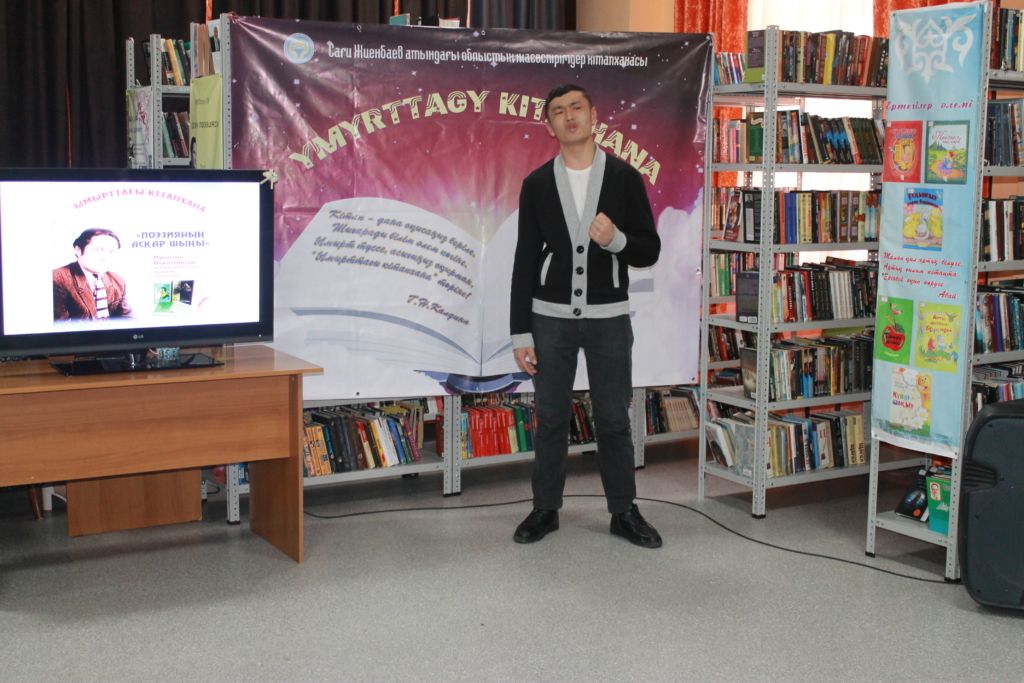 2023 жылдың 9 ақпаны күні сағат 17.00-20.00 аралығында C.Жиенбаев атындағы облыстық жасөспірімдер кітапханасы «YMYRTTAGY KITAPHANA» әлеуметтік-мәдени шарасы аясында 9 ақпан лирик ақын Мұқағали Мақатаевтың туған күніне орай «Поэзияның асқар шыңы» атты поэзия кешін өткізді.
