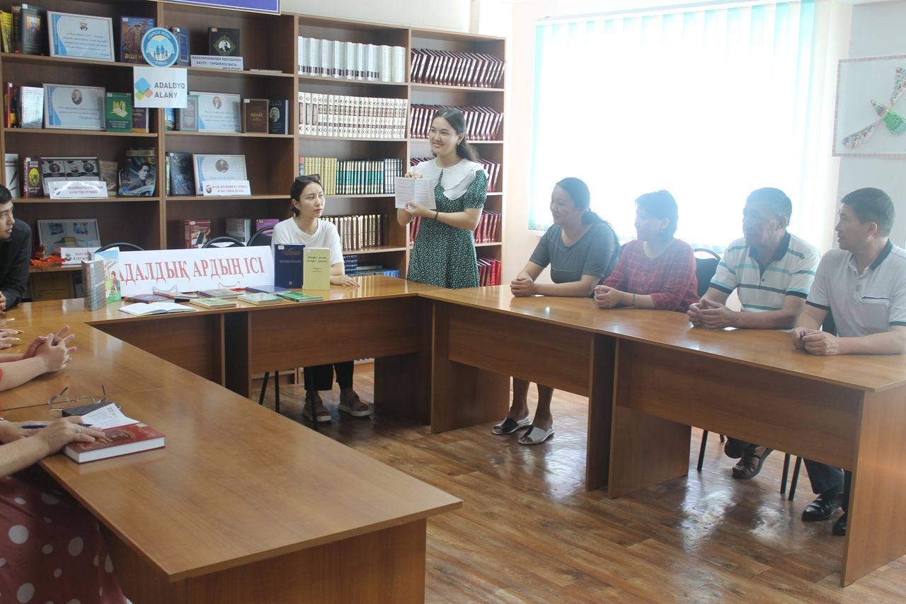 «Адалдық ардың ісі» тақырыбында кітап көрмесі ұйымдастырылып, библиографиялық шолу жасалды. Тақырыпқа сай слайд, бейнеролик көрсетілді.