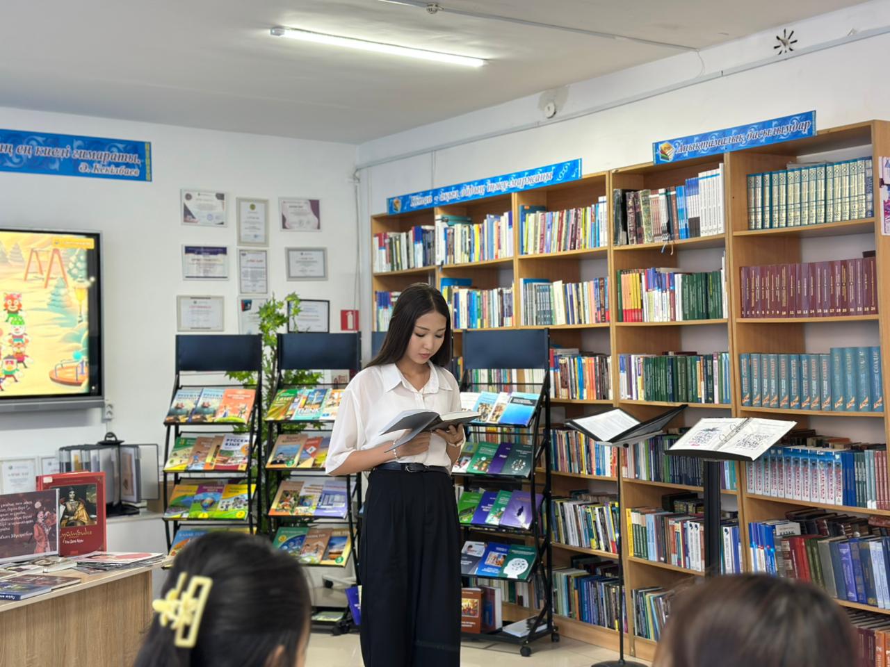 В завершение мероприятия была организована книжная выставка на тему «Қыз өссе елдің көркі» и проведён библиографический обзор.
