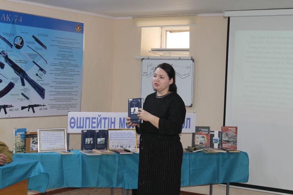Шараға арнайы кітап көрмесі ұйымдастырылып, көрмеге Азатгүл Жасұланқызы библиографиялық шолу жасады. Ауған соғысы туралы слайд көрсетіліп, бейнеролик тамашалады. Кеш аяқталған соң жастар құрметті қонақтармен естелікке суретке түсті.