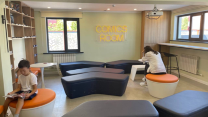 Бұл залда суретті кітаптарға қызығушылығы жоғары жасөспірімдер мен балаларға арналған комикс кітаптар топтастырылған. Кітап ішіндегі шытырманды оқиғалар суреті, жеңіл мәтіндері әр оқырманның кітапқа деген қызығушылығын оятары сөзсіз. Арнайы интерактивті тақтамен жабдықталған бұл залда әр түрлі кретивті шаралар, интеллектуалды ойындар өткізіледі. Балалар кітап оқып, ойын ойнап демалысын пайдалы өткізеді.