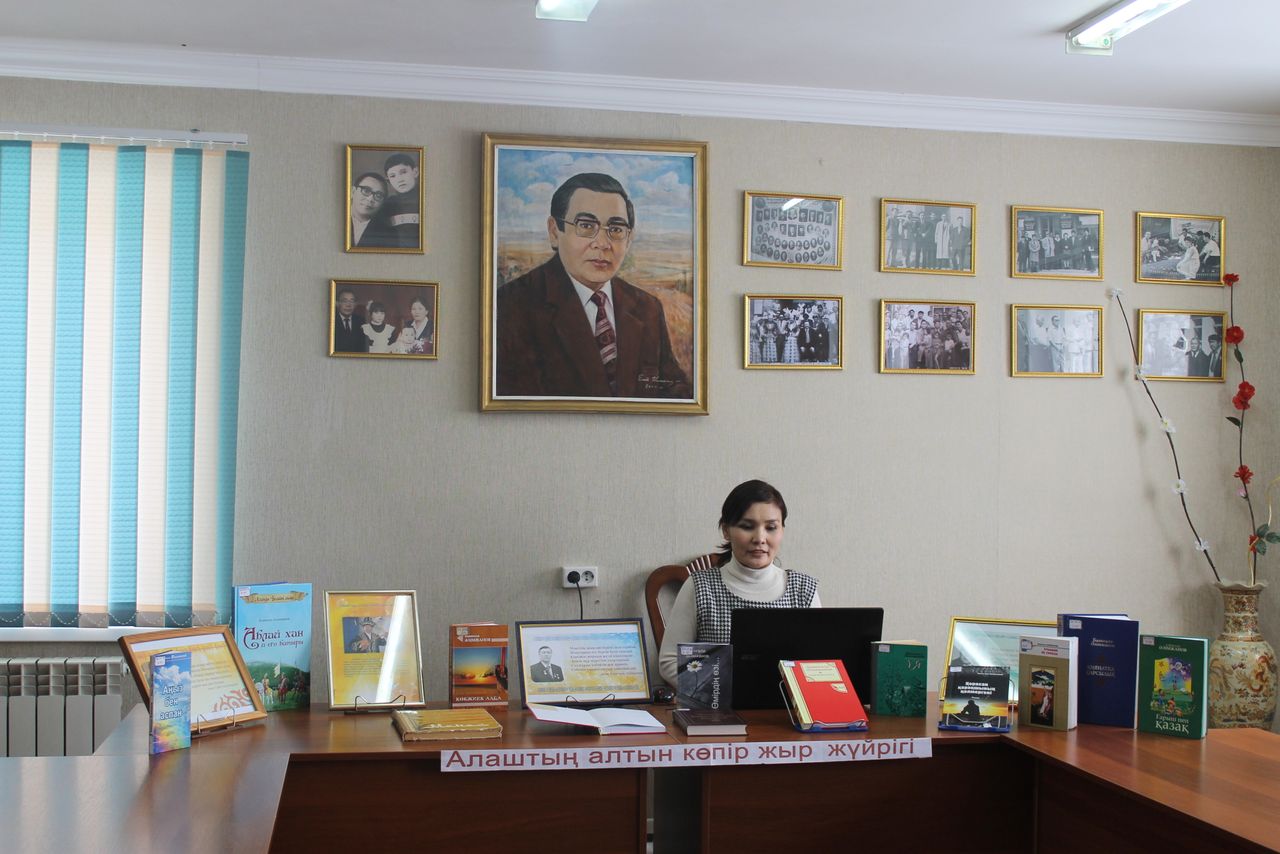 Была оформлена книжная выставка «Алаштың алтын бір жыр жүйрігі», проведен библиографический обзор выставки.