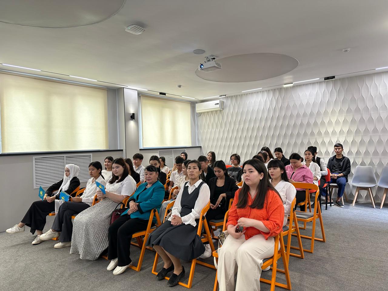 2024 жылдың 4 маусым күні сағат 11.00-де С.Жиенбаев атындағы облыстық жасөспірімдер кітапханасы Қазақстан Республикасының Мемлекеттік Рәміздер күніне орай Қ.Жұбанов атындағы АӨУ Жоғары колледж студенттеріне «Байтақ елдің биік ұста байрағын» ақпараттық сағатын өткізді.