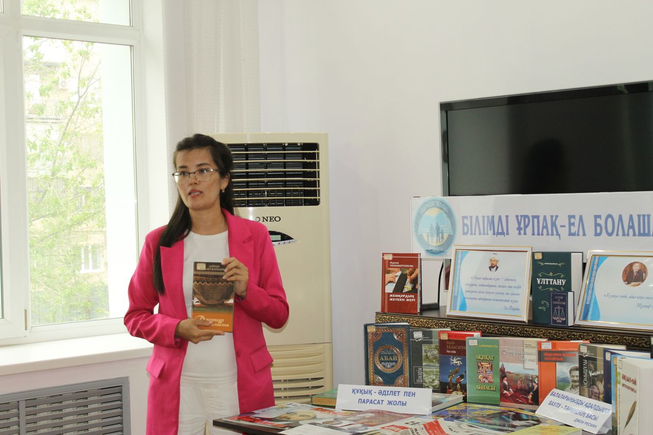 В ходе мероприятия была озвучена полезная информация о профилактике и борьбе с коррупцией, а также поделились своими мыслями. Одновременно с этим была сыграна игра «Ақпарат», прозвучали красиво сказанные фразы великих личностей, пословицы и поговорки. Согласно теме книжной выставки, сотрудники библиотеки Айнур Нурсаиновна и Лаура Ериковна провели библиографический обзор. На книжной выставке были представлены научно-популярные произведения поэтов-писателей, воспитывающие честность, справедливость и добро, книги и статьи о проблемах борьбы с коррупционной преступностью, опубликованные на страницах периодических изданий.