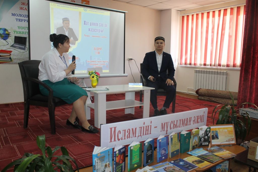 15 апреля 2022 года на базе областной юношеской библиотеки С.Жиенбаева для студентов Актюбинского высшего медицинского колледжа С.Баишева и учеников срдней школы №34 прошел духовно-познавательный час с участием представителя сектора по делам молодежи Государственного Духовного управления Казахстана по Актюбинской области, главным имамом мечети «Бакытжан» Ержана Мизамова.
