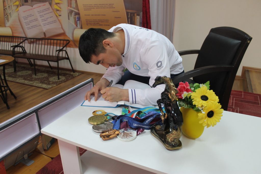 26 апреля 2022 года в 11.00 часов в областной юношеской библиотеки им.С.Жиенбаева состоялась вечер-встреча с чемпионом мира и Азии по Греко-Римской борьбе, 6-кратным чемпионом Казахстана среди взрослых, чемпионом мира на чемпионате мира среди взрослых в Париже и Нур-Султане, бронзовый призер Азиатских игр 2018 года, серебряный призер чемпионата Азии 2022 года в столице Монголии г.Улан-Батор Мейрамбеком Айнагуловым «Мейрамбек бағындырған мың белес».
