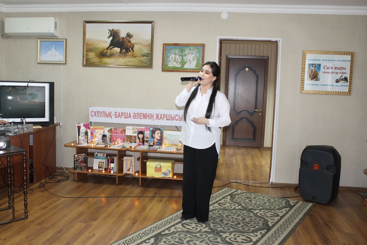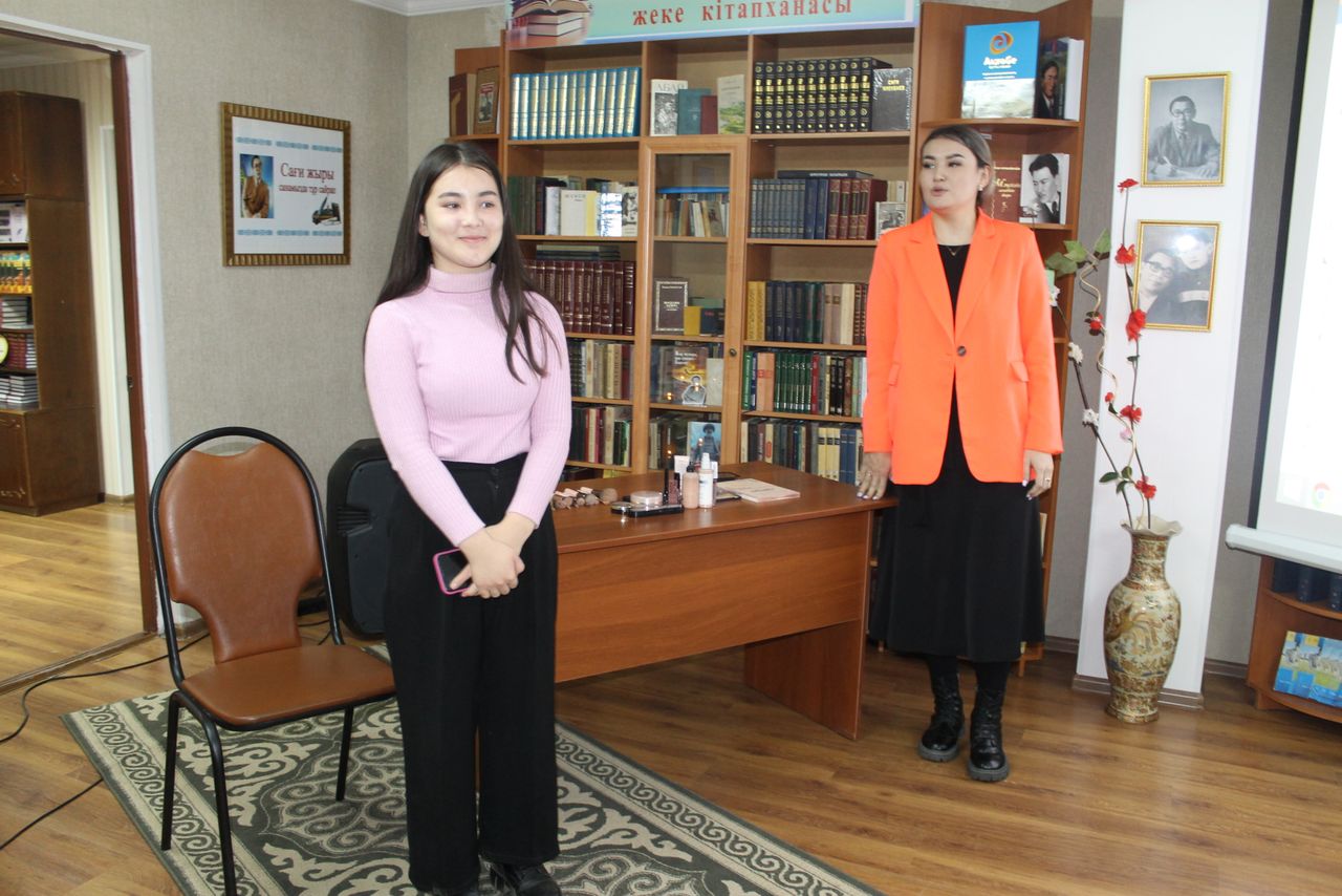В ходе мероприятия в нашей библиотеке была представлена выставка литературы на тему «Сұлулық барша әлемнің жаршысы», проведен библиографический обзор. Лаура Ериковна и Айганым Бекжановна провели интеллектуальную игру-викторину среди читателей. Отвечая на вопросы, активным участникам были вручены подарки. Студенты Актюбинского гуманитарного колледжа Балнур Калыбековна и Каракат Жалгасбаева пели песни, Сая Оракбаева, Улту Надирбаева, Акжан Байказак читали патриотические, лирические стихи.