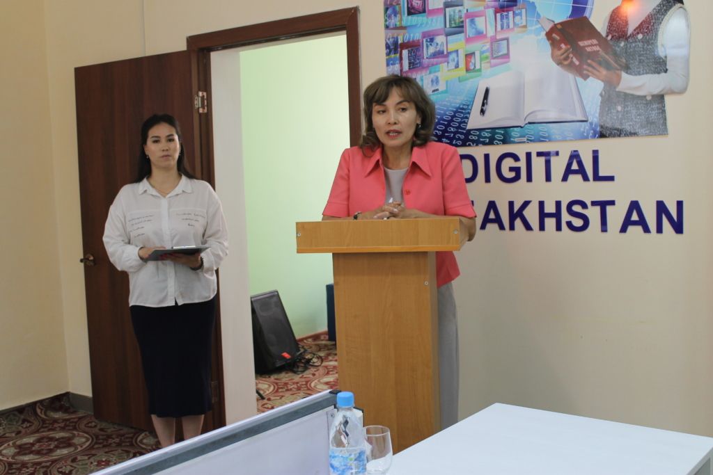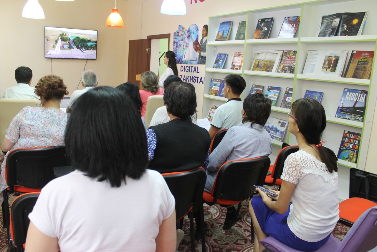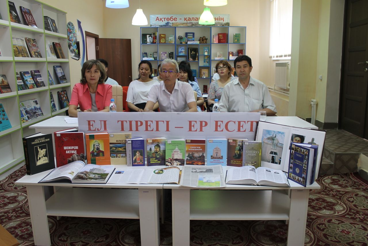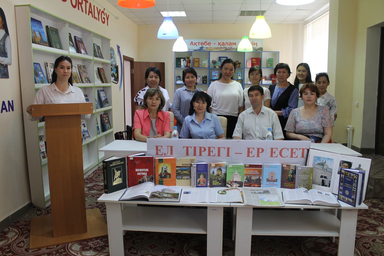 В ходе мероприятия была организована книжная выставка «Ел тірегі -ер Есет», на которой Гульнур Ергеновна провела библиографический обзор. Были показаны слайды, видеоролики по теме.