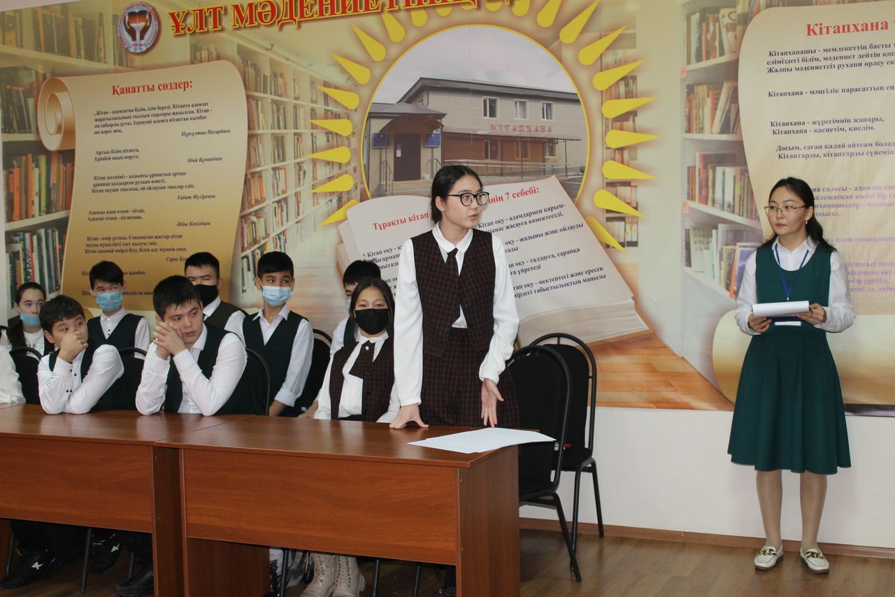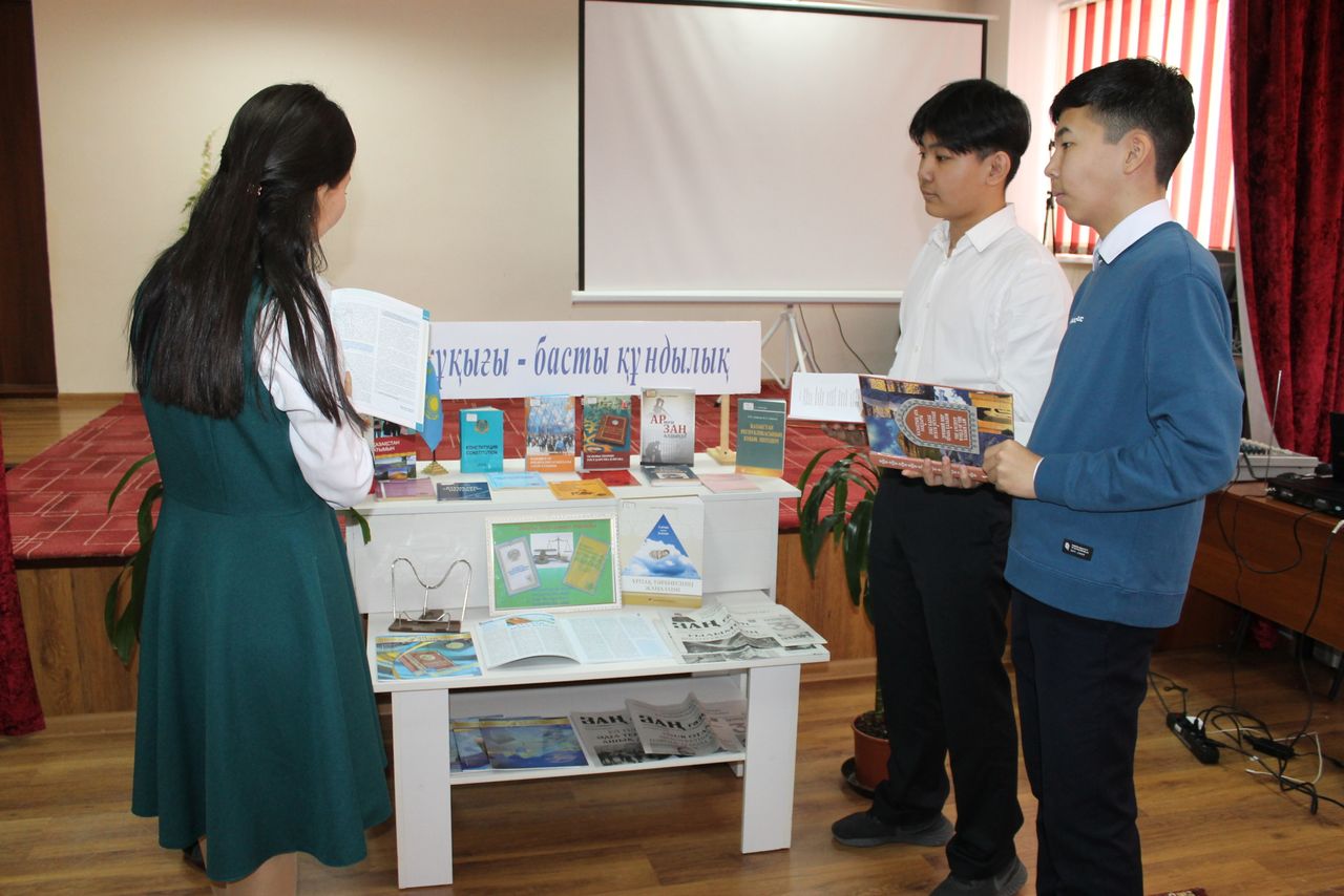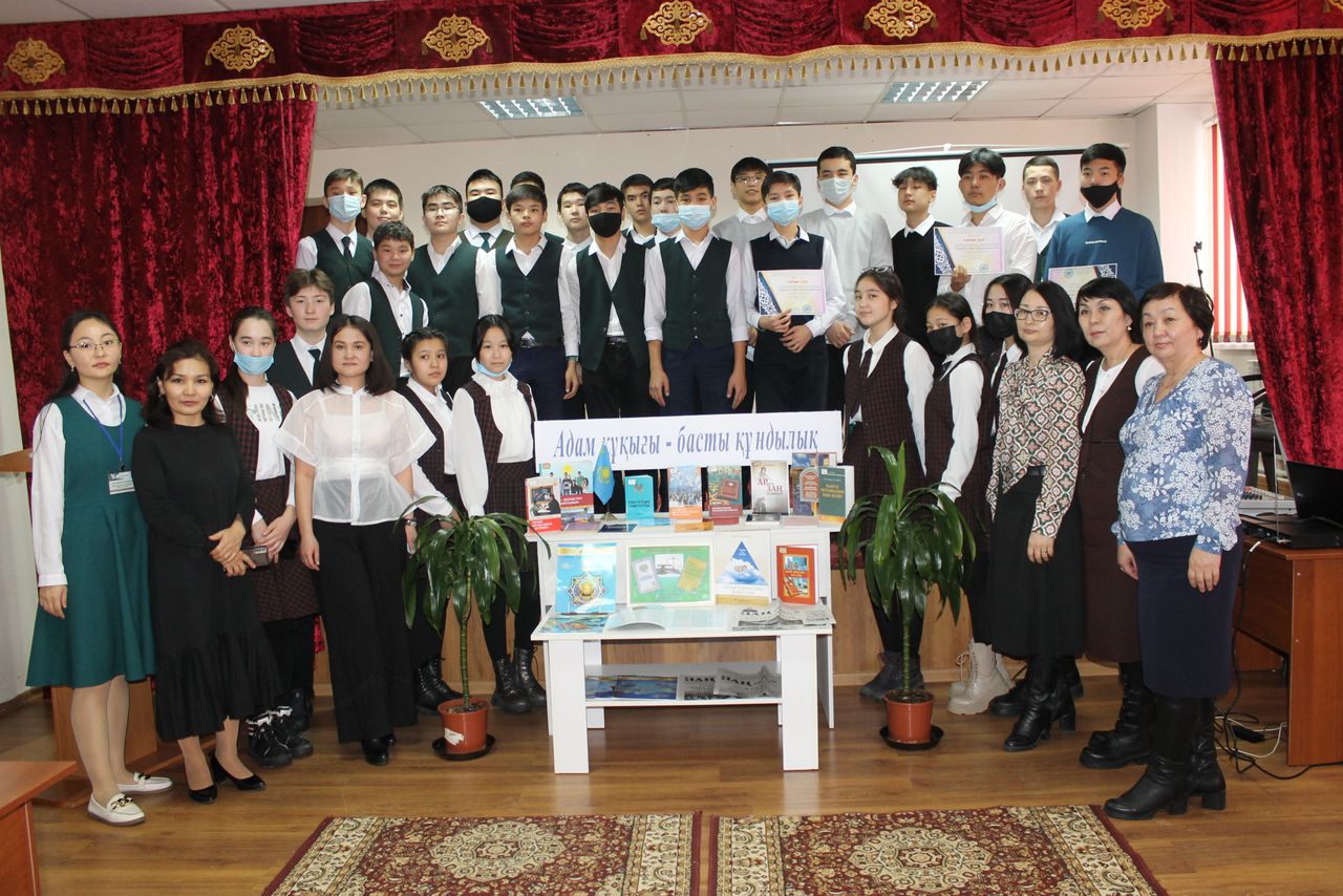 В ходе мероприятия была организована книжная выставка «Адам құқығы басты құндылық», проведен библиографический обзор выставки. Был показан слайд, соответствующий теме. В мероприятии приняли участие учащиеся средней школы №36, №30 и читатели.