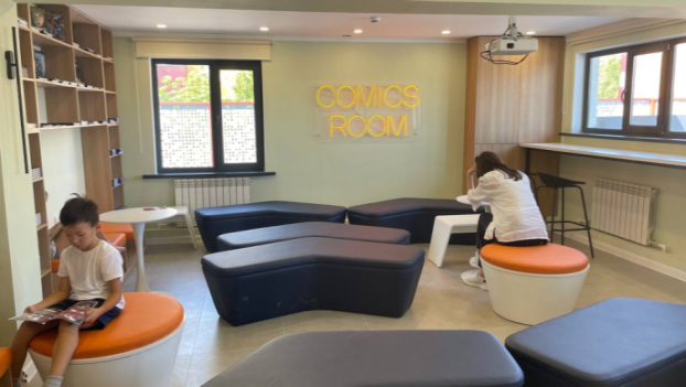 Бұл залда суретті кітаптарға қызығушылығы жоғары жасөспірімдер мен балаларға арналған комикс кітаптар топтастырылған. Кітап ішіндегі шытырманды оқиғалар суреті, жеңіл мәтіндері әр оқырманның кітапқа деген қызығушылығын оятары сөзсіз. Арнайы интерактивті тақтамен жабдықталған бұл залда әр түрлі кретивті шаралар, интеллектуалды ойындар өткізіледі. Балалар кітап оқып, ойын ойнап демалысын пайдалы өткізеді.